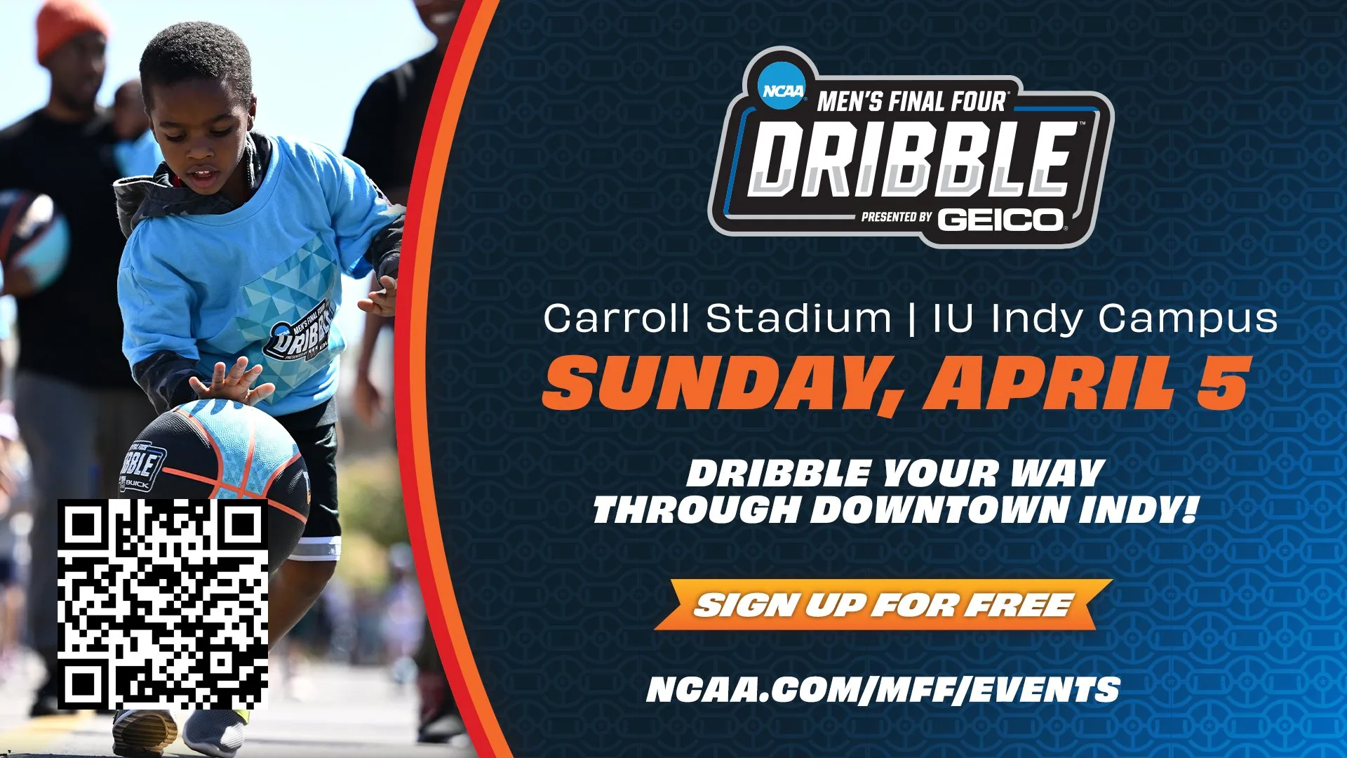 Experience the Men’s Final Four Dribble presented by GEICO, where thousands of young participants, aged 18 and under, will dribble their way through a one-mile course. Each child will show off their dribbling skills with their very own exclusive NCAA Men’s Final Four Dribble Wilson basketball, accompanied by a specially designed branded t-shirt.